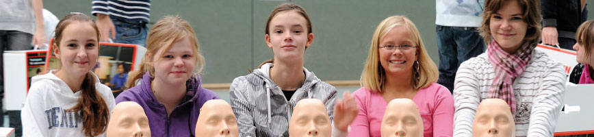 In diesem kurzen, aber intensiven Ausbildungsprogramm lernen die Kinder die Grundsätze der Ersten Hilfe. Damit sind Kinder und Jugendliche vorbereitet, wenn ein Notfall in der Schule oder in der Freizeit passiert und können richtig Alarmieren, Erwachsene benachrichtigen und ggf. Erste Hilfe Massnahmen einleiten. Unterstützen auch Sie dieses kostenlose Projekt um die Erste Hilfe Massnahmen in der Bevölkerung zu stärken und führen es in Ihrer Schule ein.
