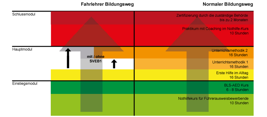 Personenkreise (z.B. Fahrlehrer, Lehrer) welche Nothilfekurse für Führerausweisbewerbende eigenständig leiten möchten.Voraussetzungen: